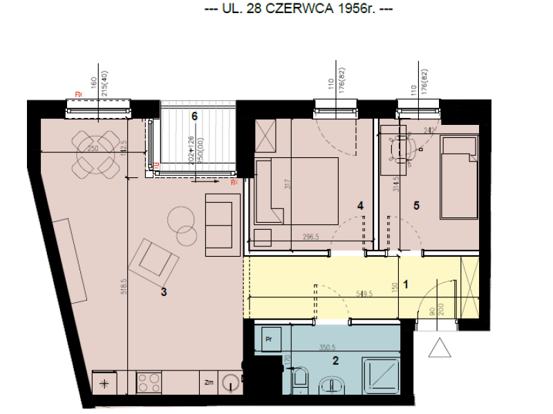 Вільна Квартира M.1.4 Building B1 Floor 1 Поверхня 55,63 m2 Кімнати 3 Міні-кухня 787 165 PLN 14 150 PLN / m2 Cena brutto (VAT 8%) Price history Prospekt informacyjny