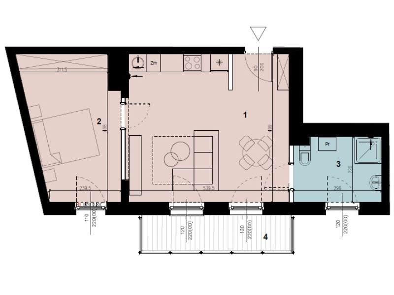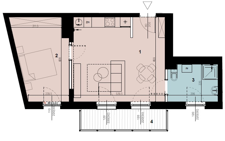 Продана Квартира M.3.13 Building B1 Floor 3 Поверхня 47,55 m2 Кімнати 2 Міні-кухня Price history Prospekt informacyjny