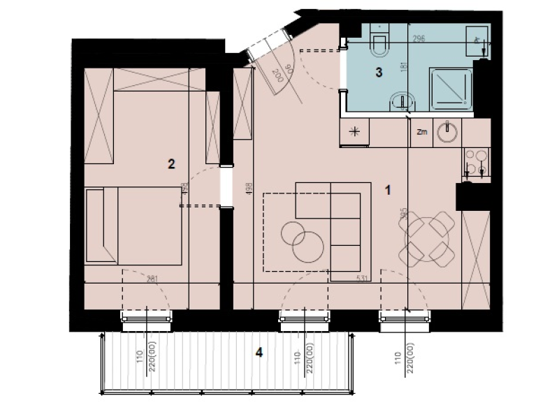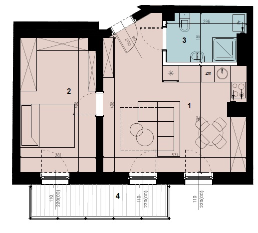 Продана Квартира M.3.17 Building B1 Floor 3 Поверхня 42,42 m2 Кімнати 2 Міні-кухня Price history Prospekt informacyjny