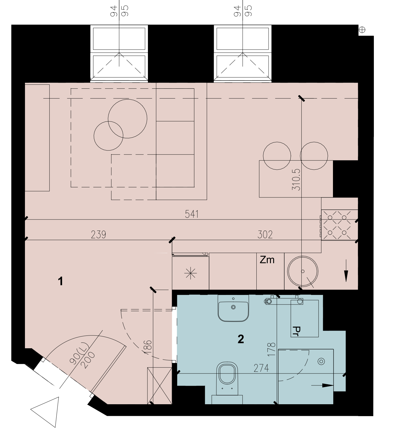 Продана Квартира M.5.25 Building B1 Floor 5 Поверхня 25,45 m2 Кімнати 1 Міні-кухня Price history Prospekt informacyjny