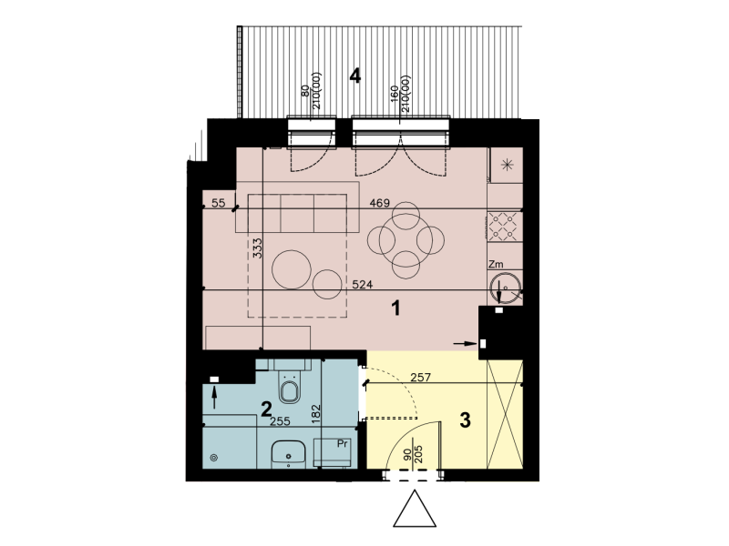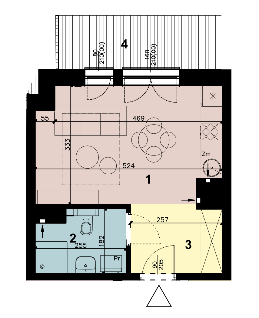 Продана Квартира M.1.2 Building B2 Floor 1 Поверхня 25,09 m2 Кімнати 1 Міні-кухня Price history Prospekt informacyjny