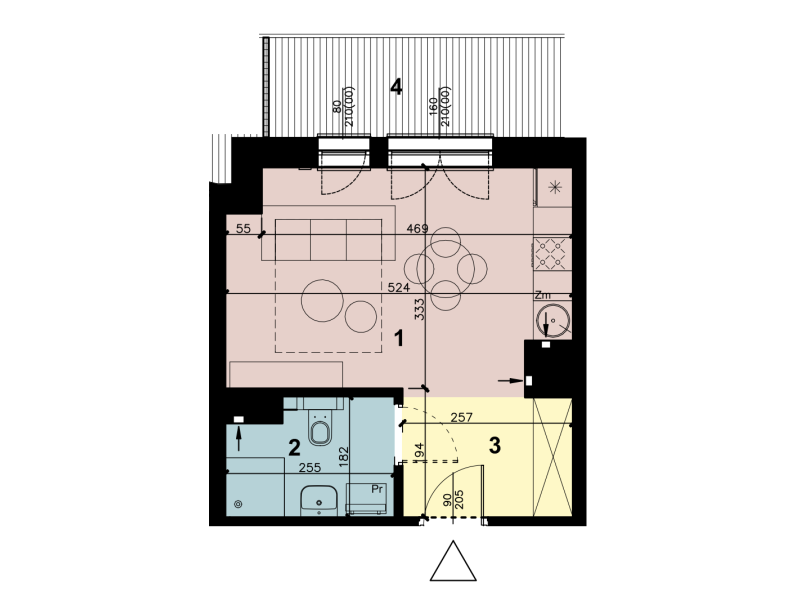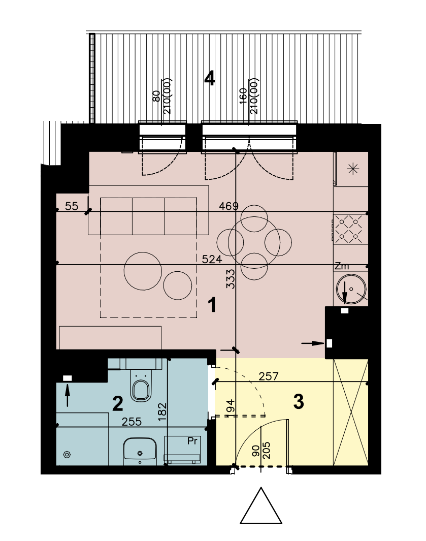 Продана Квартира M.3.2 Building B2 Floor 3 Поверхня 25,09 m2 Кімнати 1 Міні-кухня Price history Prospekt informacyjny